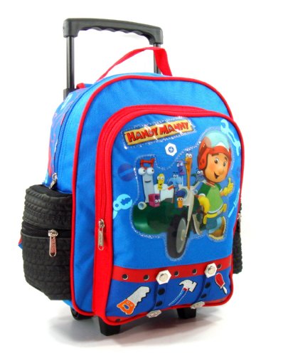 Disney Handy Manny Small Rolling Backopack oddler size rolling backpack measures 12"H x 9"W x 4"D * Two side pockets with Zipper-Closure : Disney logo zipper pull * Large zipper front pocket, zipper main compartment * Telescope handle that raises 9" from the top (total height approx. 22") * S ...