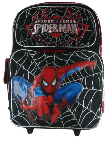 Spiderman Large Rolling School Backpack <BR>Send your kids to school with their favorite super hero character Spiderman . This large backpack features 2 zipper pockets, a side velcro flap pocket, a side mesh pocket, and a 12" adjustable handle. Dimensions 17"x12"<BR>0 ...